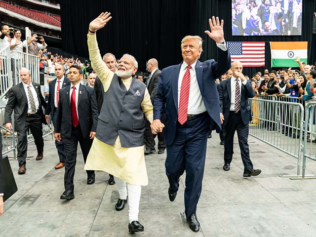President Donald J. Trump holds hands with Prime Minister Narendra Modi of India as they take a surprise walk together Sunday, Sept. 22, 2019, around the NRG Stadium in Houston, Texas. (Official White House Photo by Shealah Craighead)