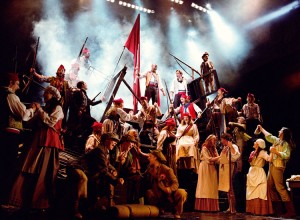 I’ve discussed how Les Mis is a triumph of storytelling and stage direction as well as technical theatre excellence, but in the end, this show boils down to a really great score. The music is sweeping and powerful, tender and moving, funny and raucous, and climactic and chilling. And in one song in particular, composer Claude-Michel Schönberg and librettist Alain Boublil achieve all of these things at the same time. Act 1 finale “One Day More” became an instant classic upon its first public performance and continue to be the single most impressive song written for the musical theatre. It borrows much from Leonard Bernstein and Stephen Sondheim’s “Tonight” from “West Side Story” but it achieves even more by expressing to the audience every character’s individual storyline at the end of the first act by utilizing a different musical motif for each character individually, and then in a triumph of overlapping counterpoint the different musical themes heard in songs earlier in the show combine into a cacophony of music that dares the audience not to come back for Act 2!