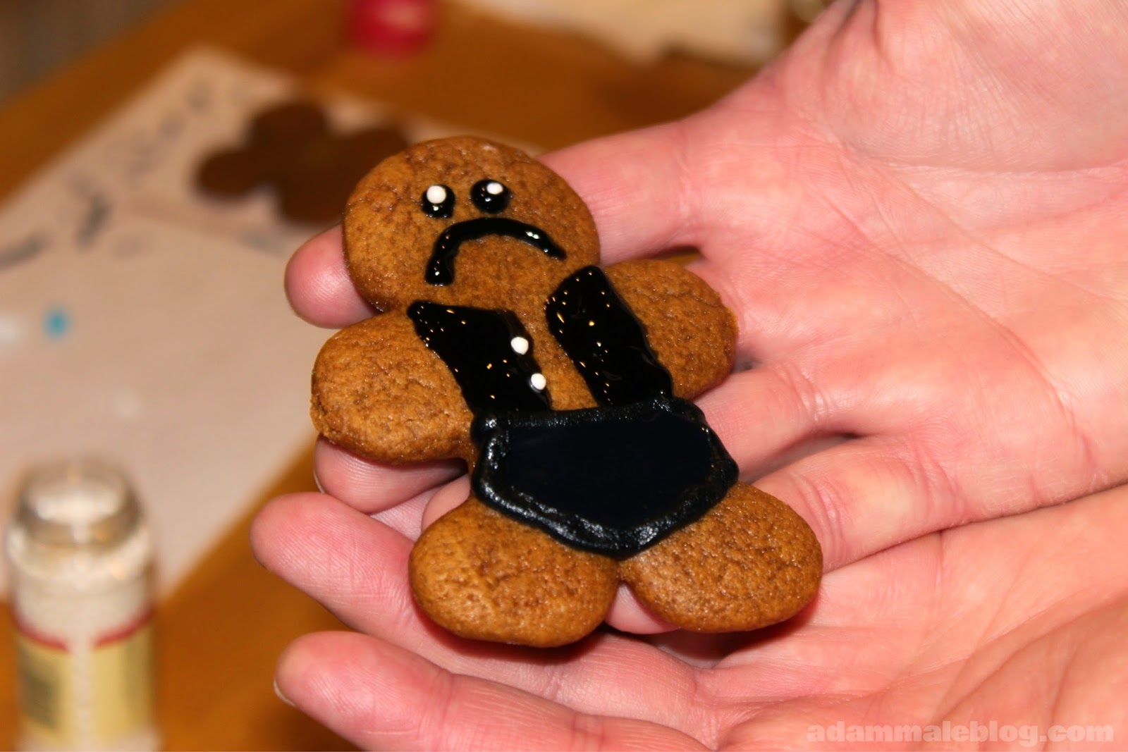 With five simple steps, and replacing the currants with a jockstrap, harness, and ball gag, Whittlesey transformed the ordinary gingerbread cookies into naughty treats that may not be so family-friendly.