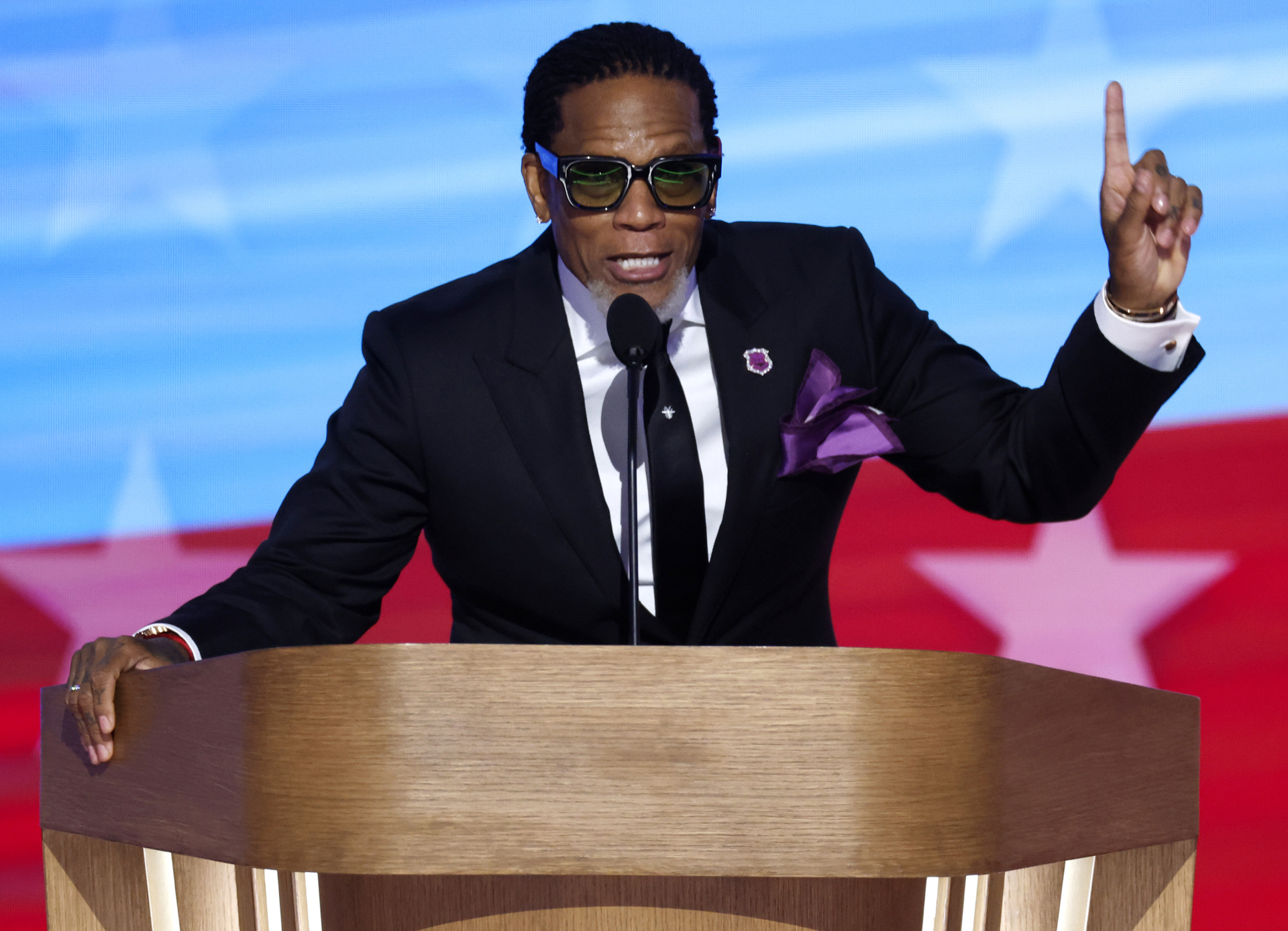Actor and comedian D.L. Hughley speaks on stage during the final day of the Democratic National Convention at the United Center on August 22, 2024 in Chicago, Illinois. Delegates, politicians, and Democratic Party supporters are gathering in Chicago, as current Vice President Kamala Harris is named her party’s presidential nominee. The DNC takes place from August 19-22. (Chip Somodevilla/Getty Images)