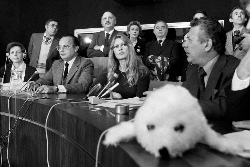 Brigitte Bardot at the European Council to condemn the seal hunt in Strasbourg, France on January 24th, 1978. (Laurent MAOUS/Gamma-Rapho via Getty)
