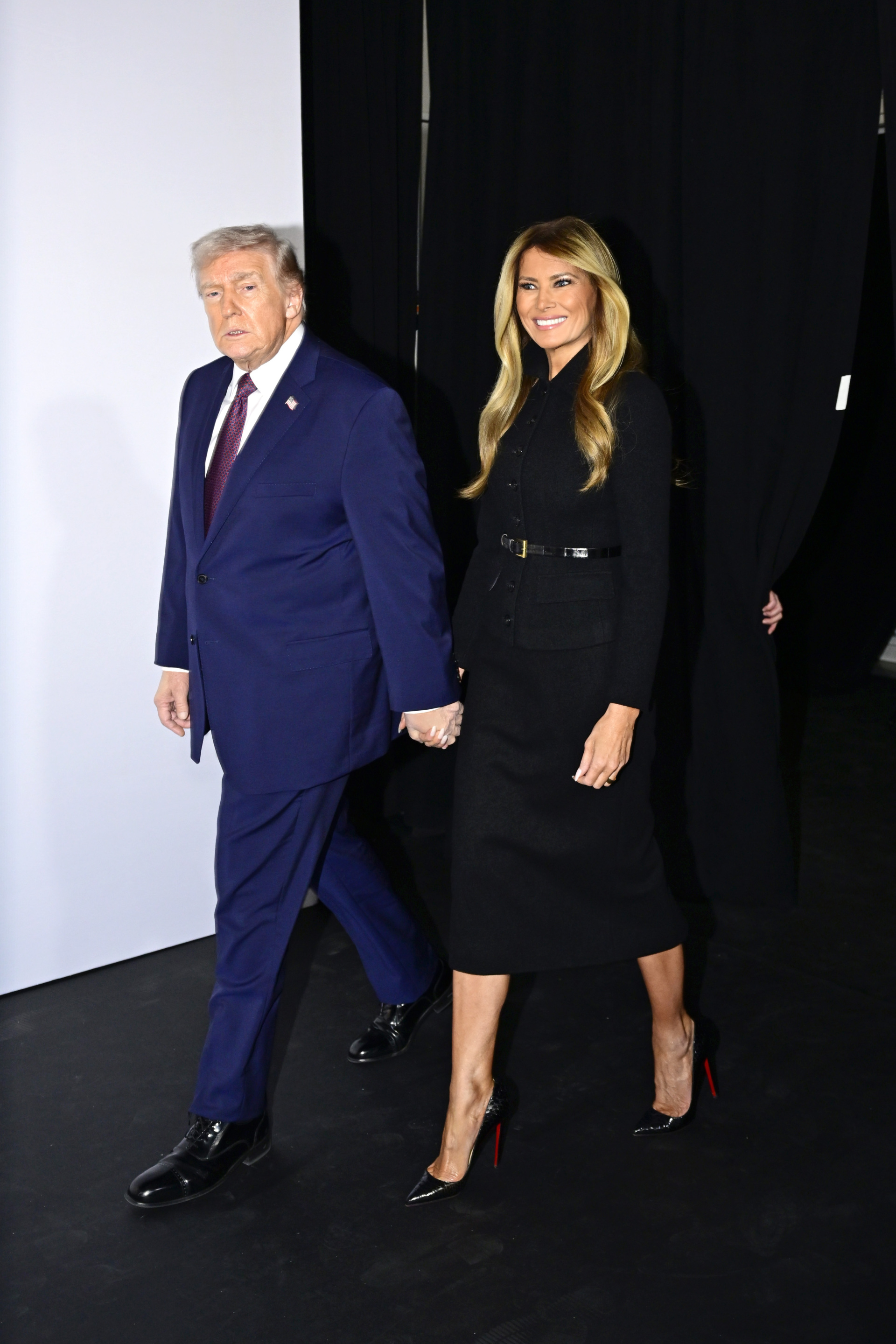 Mrs. Trump, styled by longtime fashion confidant Hervé Pierre, paired the Dolce & Gabbana suit with black leather Christian Louboutins in alligator and a thin black gator skin belt with a tiny gold buckle.