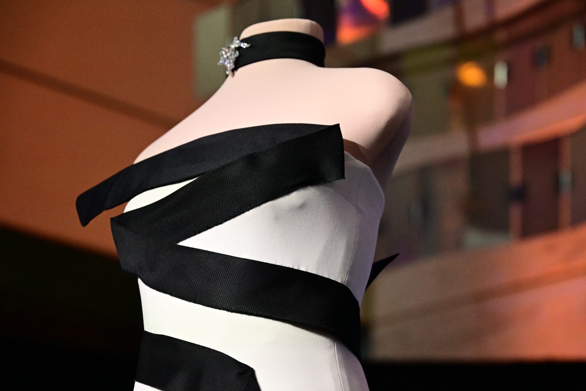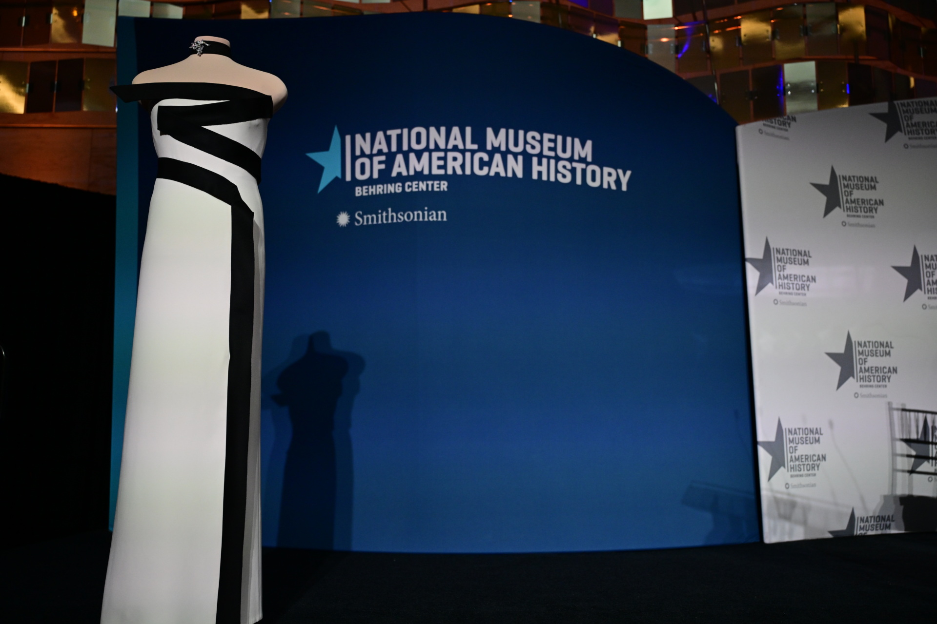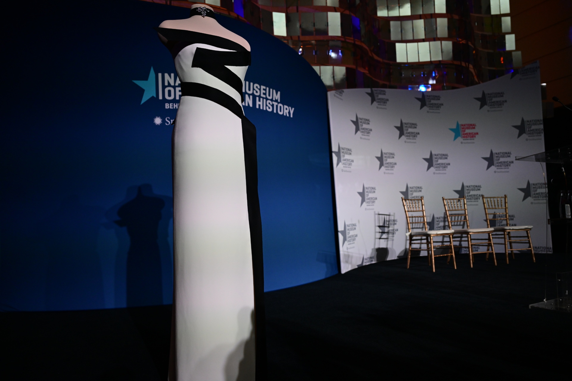 WASHINGTON, UNITED STATES – FEBRUARY 20: A view of strapless black-and-white gown, designed by first Lady of the US Melania Trumpâs fashion designer and stylist Herve Pierre, at the Smithsonian National Museum of American History in Washington, D.C., US on February 20, 2026. The strapless black-and-white gown was designed by her longtime fashion designer and stylist, Herve Pierre, who is seen sketching it for the first lady and fitting her in it in ‘Melania,’ her recently released documentary. (Photo by Kyle Mazza/Anadolu via Getty Images)