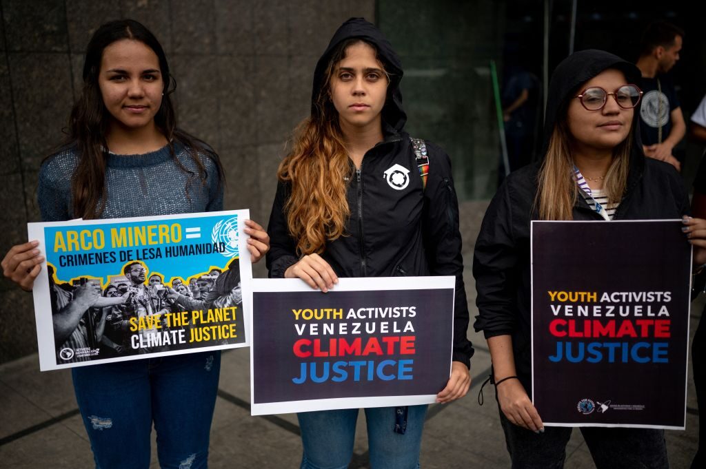 File/Members of the Coalition of Youth-Led Civil Society Organisations for Climate Justice demonstrate against Nicolas Maduro’s participation at the UN Climate Change Conference (COP27) and to demand justice for human rights and climate change, in front of the UN Programme for Development (UNDP) office in Caracas on November 11, 2022. (FEDERICO PARRA/AFP via Getty)