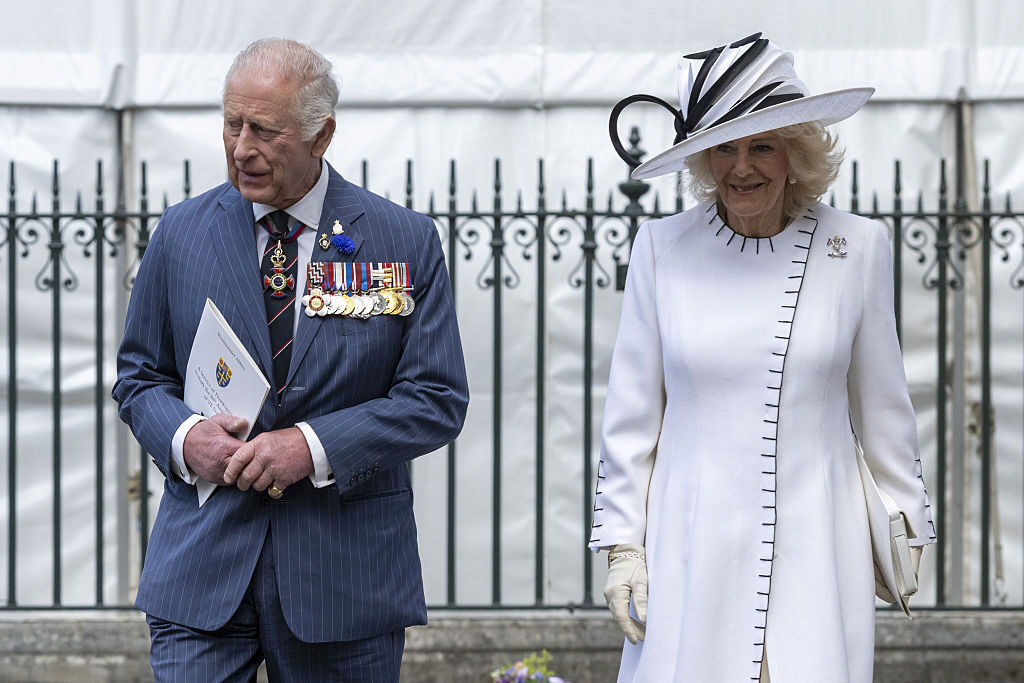 King Charles III and Queen Camilla attend a Service of Thanksgiving at Westminster Abbey for the 80th anniversary of Victory in Europe Day (VE Day) in London, United Kingdom on May 08, 2025. (Stringer/Anadolu via Getty Images)