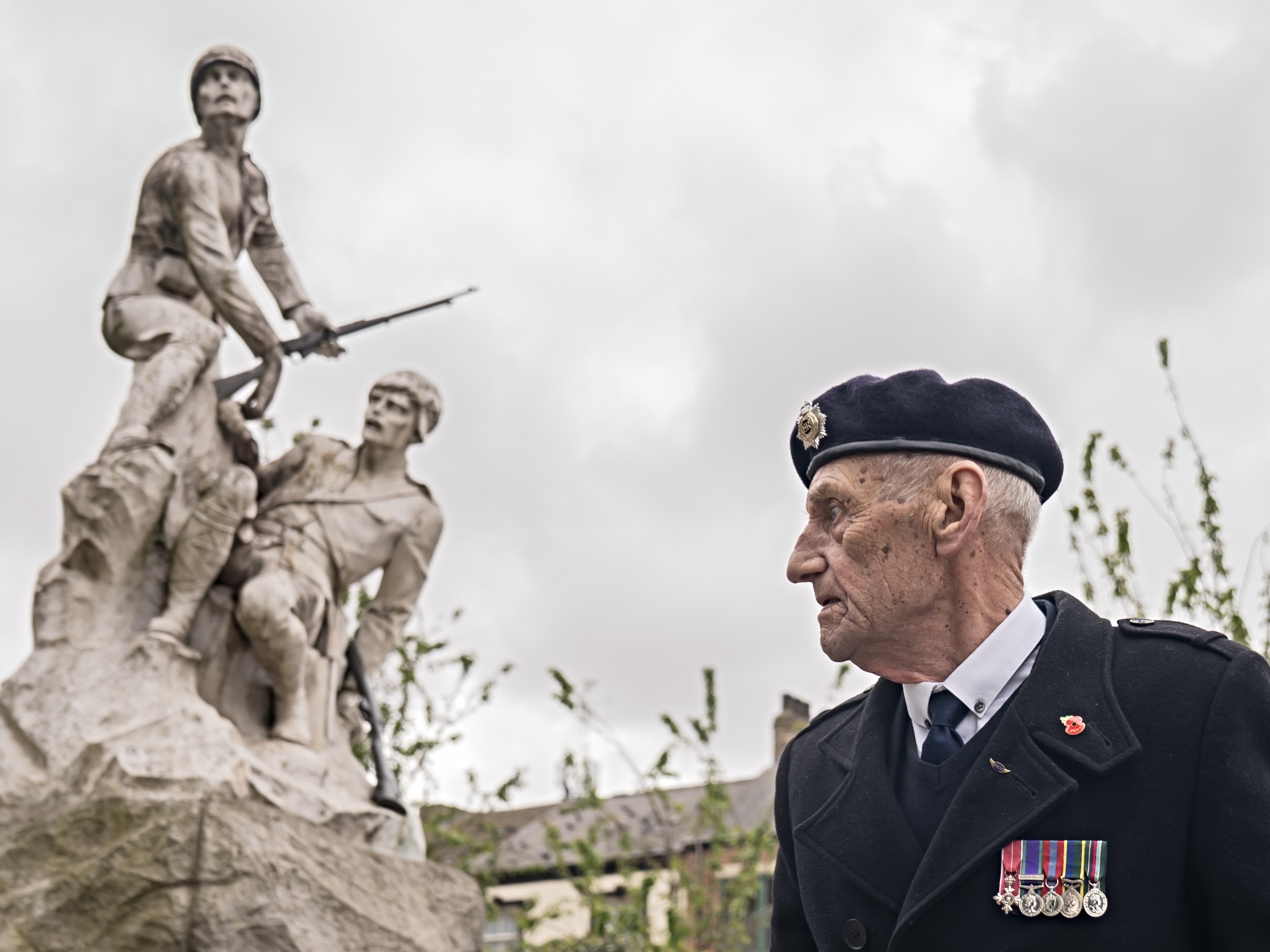 A veteran at the Cenotaph on Paragon Square in Hull, at a memorial event hosted by the Royal British Legion to mark the 80th anniversary of VE Day. Picture date: Thursday May 8, 2025. (Danny Lawson/PA Images via Getty Images)
