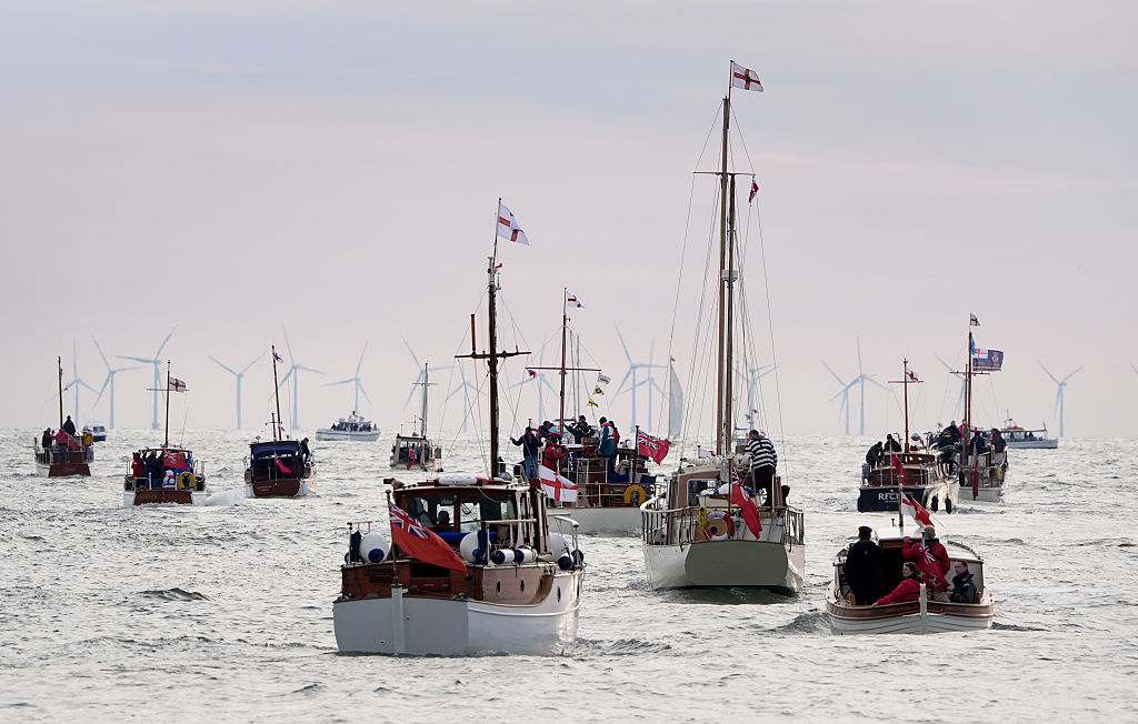 A flotilla of Little Ships sail out of Ramsgate, Kent, during ‘Dunkirk 85’, the Association of Dunkirk Little Ships (ADLS) commemorative cruise to Dunkirk, to mark the 85th anniversary of Operation Dynamo, when the Little Ships were among those who answered the call to send small vessels to Dunkirk to help rescue some of the nearly 340,000 British, French and Belgian troops stuck there. Picture date: Wednesday May 21, 2025. (Photo by Gareth Fuller/PA Images via Getty Images)