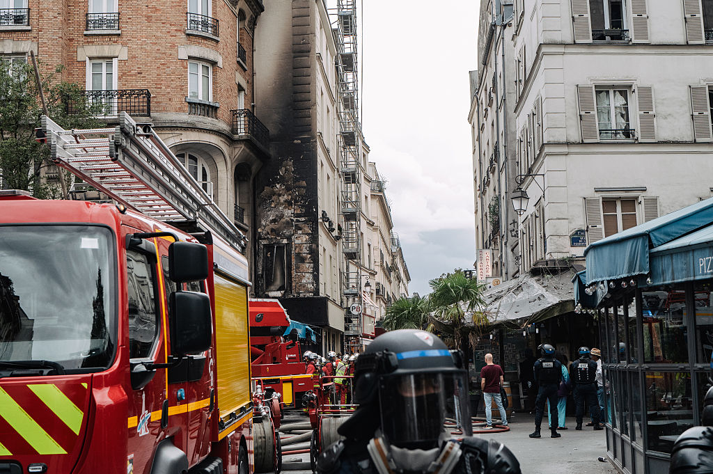 A fire set by protesters blocks a street near the Place des Fetes, during a demonstration as part of the “Bloquons tout” (“Let’s block everything”) protest movement, in Paris, on September 10, 2025. The broad anti-government campaign, dubbed “Bloquons tout” (“Let’s block everything”), calls for a a shutdown of France on September 10 with a string of protest actions and civil disobedience around the country, while the handover of power between the new Prime Minister and his predecessor, who suffered a crushing loss in a confidence vote on September 8, is scheduled for the same day at noon. (Photo by Aurore MESENGE / AFP) (Photo by AURORE MESENGE/AFP via Getty Images)
