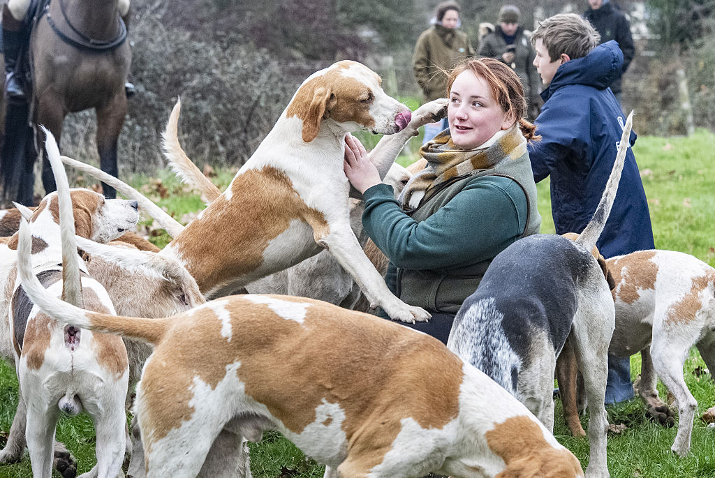Hounds meet members of the public during the Tedworth Hunt’s Boxing Day meet in Pewsey, Wiltshire. Picture date: Friday December 26, 2025. (Photo by Ben Birchall/PA Images via Getty Images)