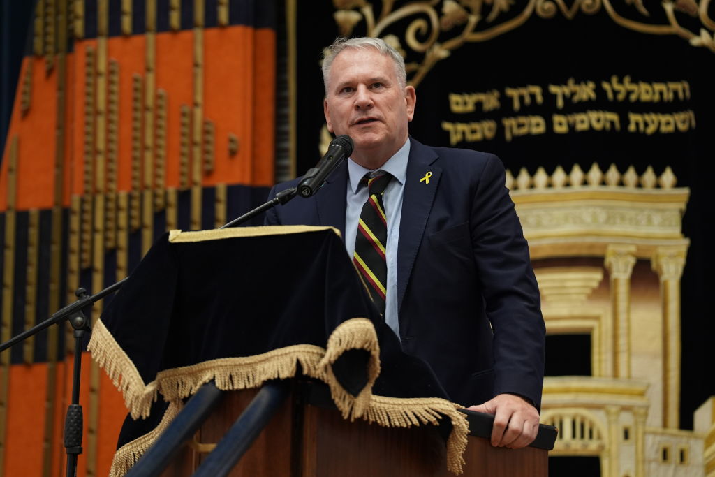File/Former commander of British forces in Afghanistan Colonel Richard Kemp speaking at a rally calling for the release of the hostages taken in the October 7 Hamas attacks at St Johns Wood United Synagogue in London on Sunday April 7, 2024. (Lucy North/PA Images via Getty Images)