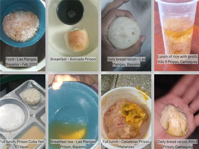 Interviews with former political prisoners and photos of the meals smuggled out of Cuba’s prisons allowed Prisoners Defenders to conclude that, nationwide, prisoners are subject to a three-course daily menu. Breakfast typically consists of a “piece of soft bread” and unsweetened tea of unclear origin. Both lunch and dinner consist of one serving of “less than 30 grams of cooked rice,” a liquid described as sour soup, and a “boiled croquette.” The reports do not clarify exactly what the croquette is made out of.