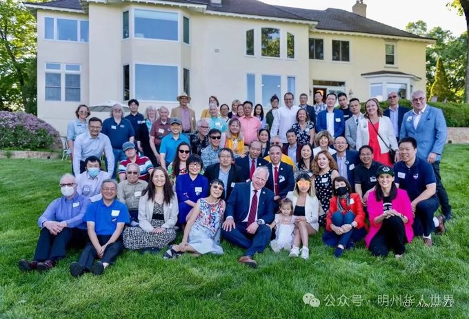 Walz at a June 2022 gubernatorial fundraiser with Bingwen Yan and Deng Qing, among other Minnesota OCSC associates.