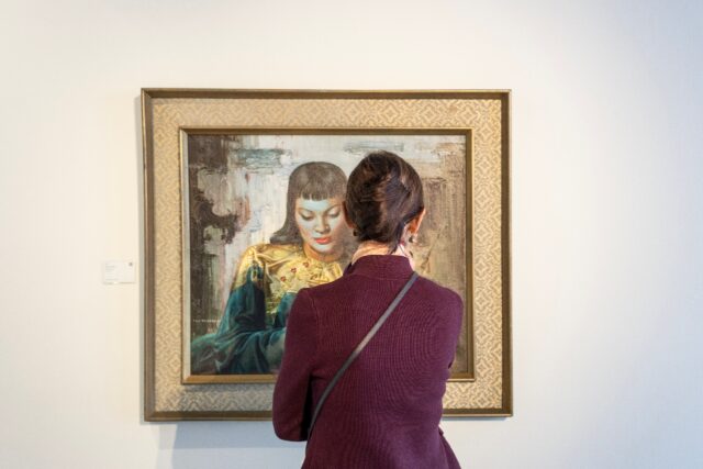 The 1955 portrait of a glamorous woman in a green and gold silk gown is among Tretchikoff’s most recognisable pieces, reproduced the world over on items such as tablecloths to handbags.