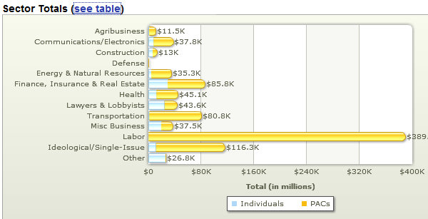 Richardson’s ethics issues, support for heath care and her statements regarding “Comrade” Fidel Castro should be fresh in voters minds come November but according to Open Secrets, Richardson still is heavily union backed. The graphic below illustrates that unions have historically poured money into her campaign, big spenders like SEIU may be expected to step up the donations in order to retain the seat.
