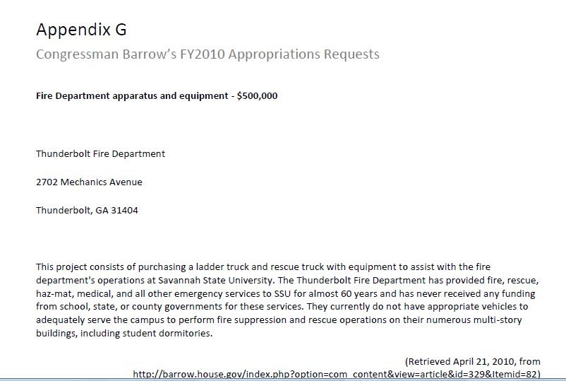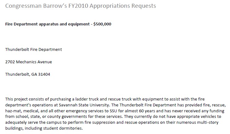 The report also includes information on the Federal funds that Smith had either applied or lobbied for in his capacity as Thunderbolt Fire Chief.