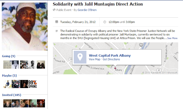 The Radical Caucus of Occupy Albany and the New York State Prisoner Justice Network will be demonstrating in solidarity with political prisoner Jalil Muntaqim, currently sentenced to six months in the SHU (Segregated Housing Unit) at Attica Prison. We will use the People’s Mic for a call and response of our demands to an end of mass incarceration, over-sentencing to the SHU, and specifically to bring attention to Jalil’s case.