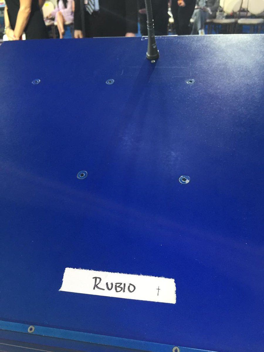 CNN is hosting the debate and revealed that GOP presidential candidate Sen. Marco Rubio (R-FL) drew a cross next to his name on the podium where he will be standing later tonight.