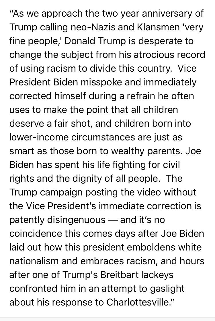 “[Former] Vice President Biden misspoke and immediately corrected himself during a refrain he often uses to mat the point that all children deserve a fair shot, and children born into lower-income circumstances are just as smart as those born to wealthy parents,” the campaign said in a statement.
