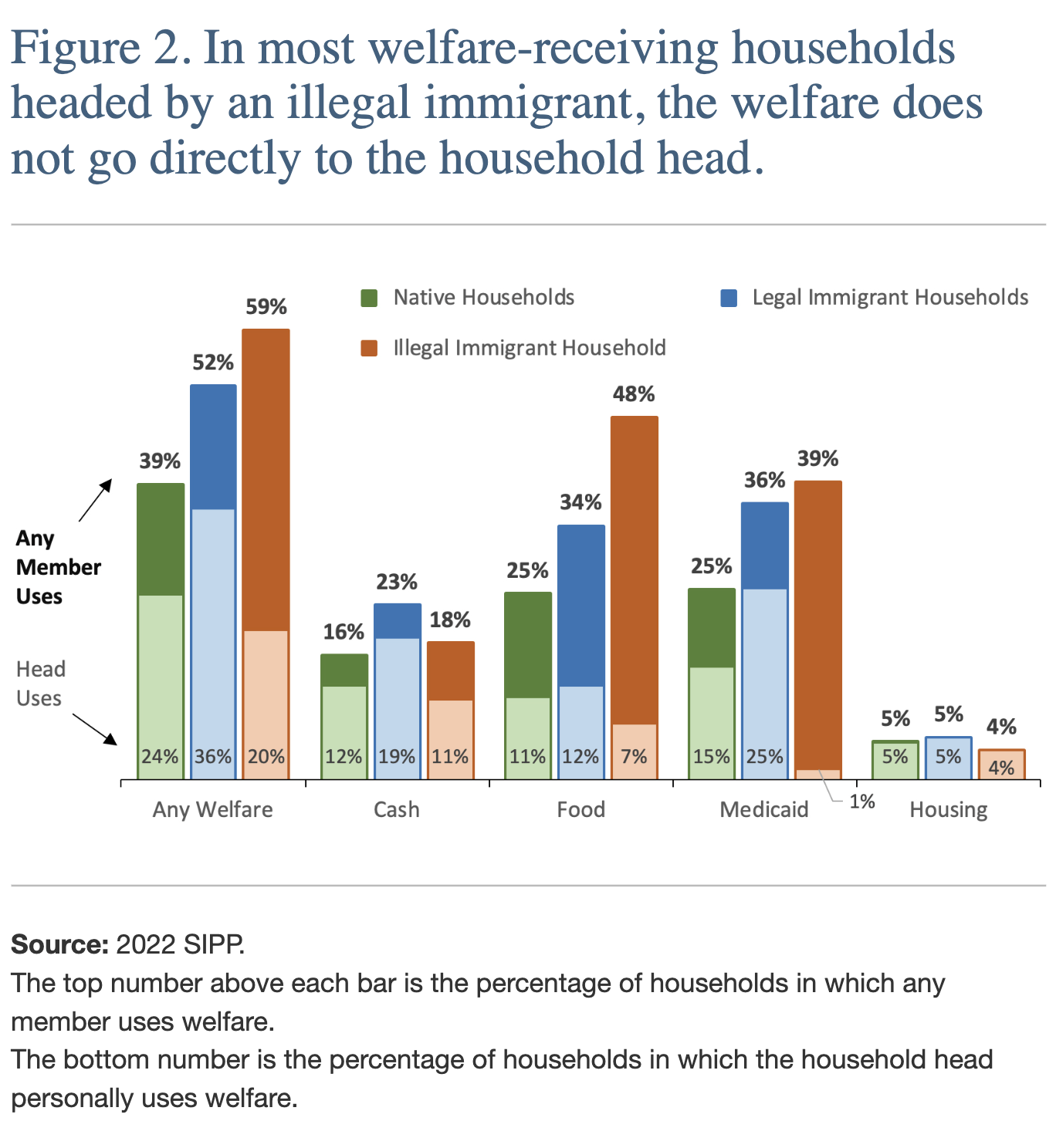 “While 59 percent of households headed by an illegal immigrant receive welfare, just 20 percent of illegal immigrant heads personally receive welfare themselves,” CIS’s Jason Richwine wrote in March.