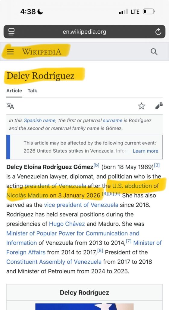 Leftist online source Wikipedia wasted no time in defining the Trump administration’s flawless capture of Venezuela’s illegitimate socialist dictator, Nicolás Maduro, and his wife, Cilia Flores, as something less than a moment to be celebrated.