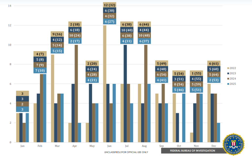 The FBI also provided Breitbart News with a chart showing the statistics in recent years:
