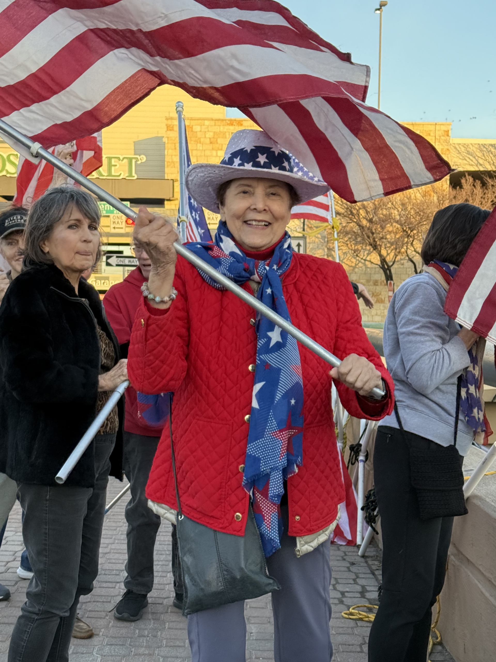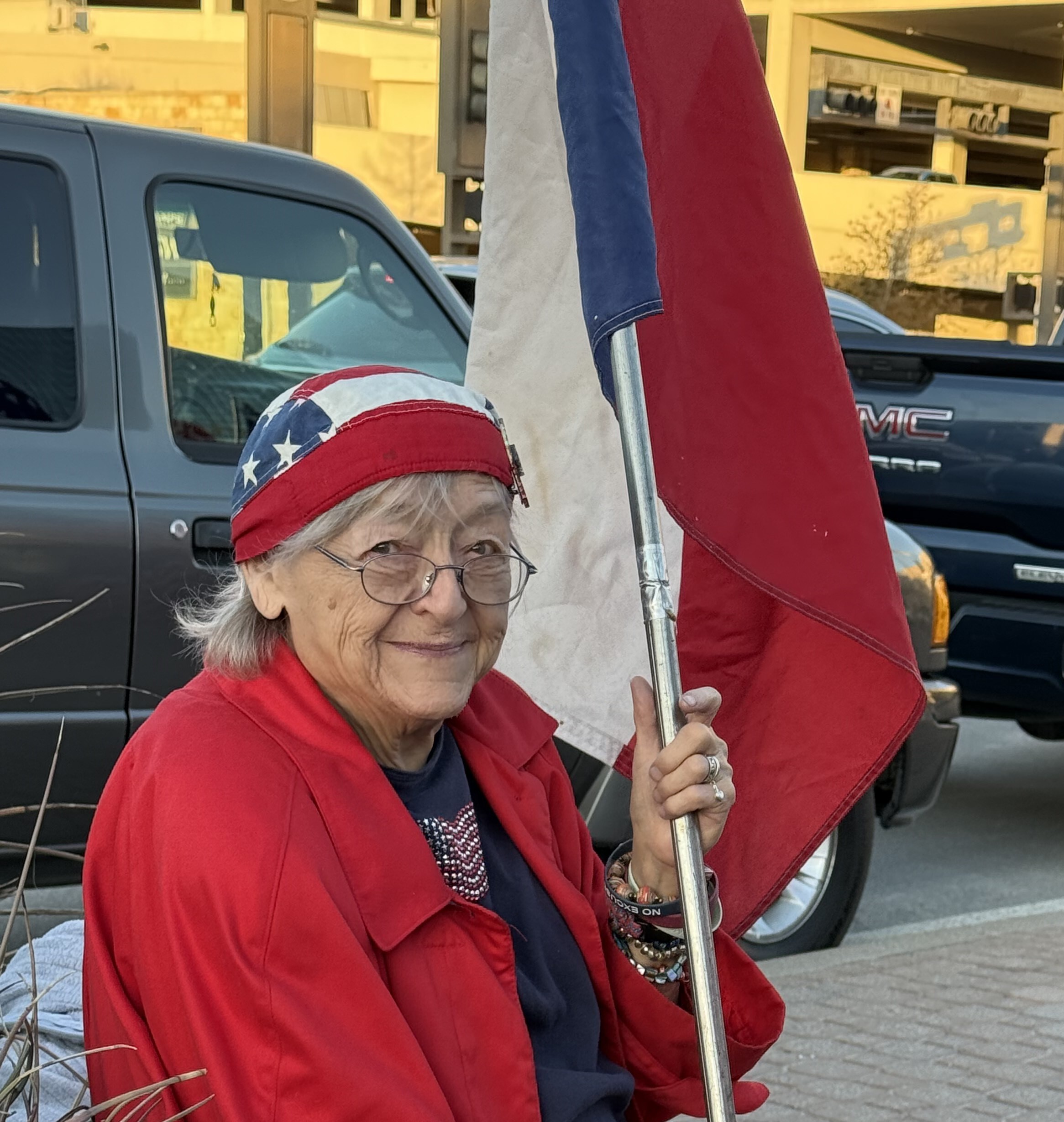 A Dallas 1776 Bridge Brigade member poses with an American flag on Thursday, February 5, 2026, in Dallas, Texas. (Photo courtesy of the Dallas 1776 Bridge Brigade)