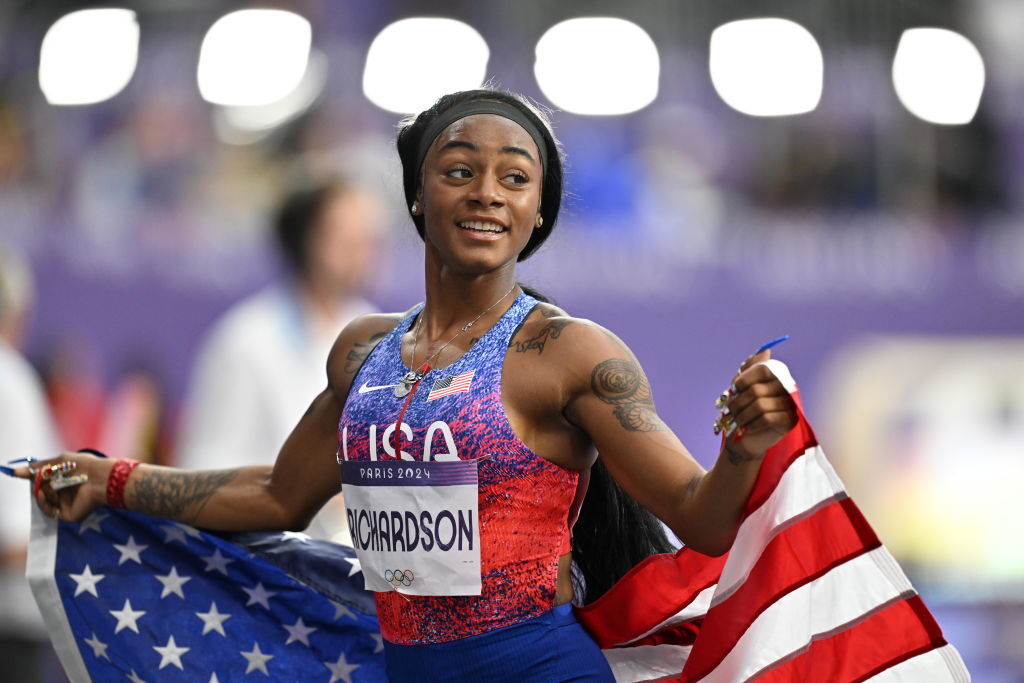 The sprinter, regularly applauded as one of the fastest women of all time, won silver in the 100m at the Paris Olympics and gold as part of the USA’s 4x100m relay team.